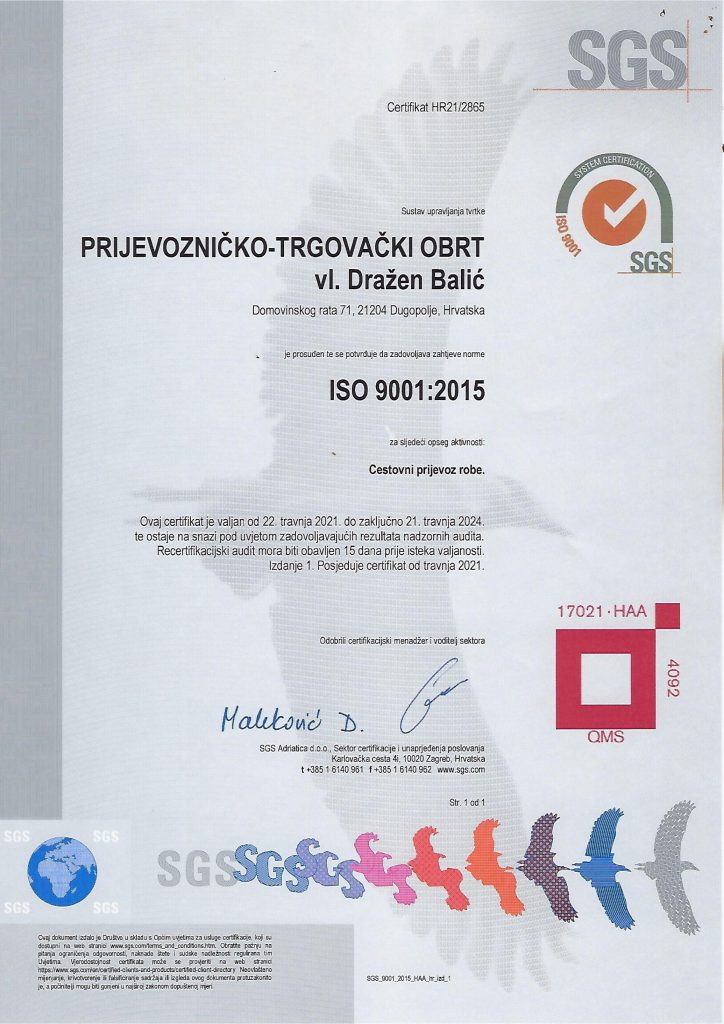 Posjedujemo certifikate koji jamče našu kvalitetu i izvrsnost.